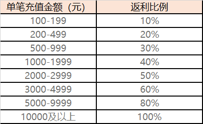 计算规则(单日充值100元,应获得返利为5000不带充值效果的元宝)